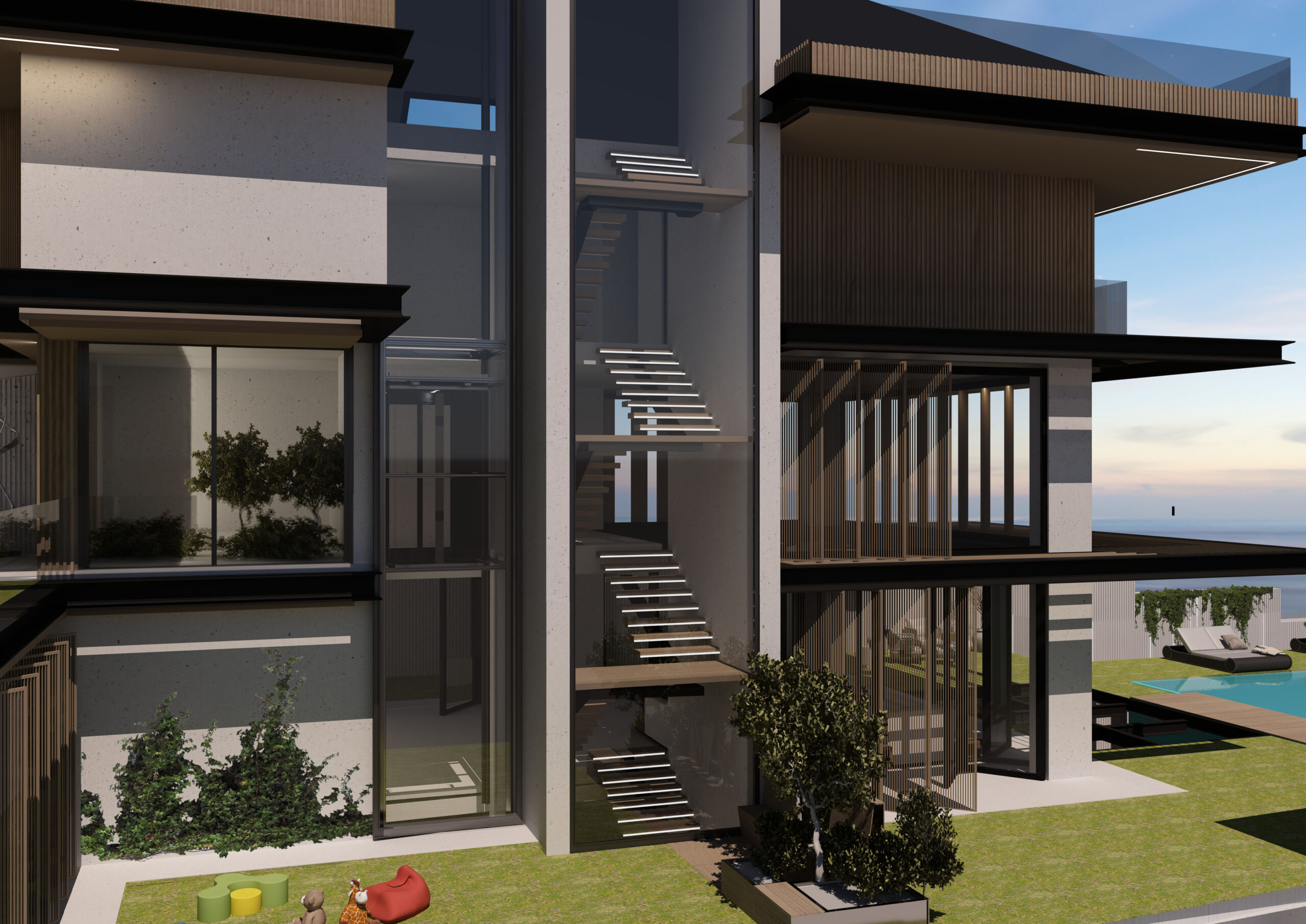 Kısıklı’da tasarlanan konut projesi, çağdaş mimari anlayışıyla “zamansız yaşam” kavramını öne çıkarır. Doğayla bütünleşen yalın hatları, geniş cam yüzeyleri ve ışığı mekâna davet eden kurgusuyla yapı, sakinlerine hem dingin hem de sofistike bir atmosfer sunar. İç mekânda kullanılan doğal taş, ahşap ve nötr tonlar; sessiz bir ihtişam yaratırken aynı zamanda konforlu bir yaşama alanı oluşturur. Akıllı sistemler ile desteklenen proje, lüksü gösterişten uzak bir zarafetle yorumlar. Açık planlı yaşam alanları, çift yükseklikli salonlar ve manzaraya açılan teraslar, mekânı sadece bir ev değil, çağdaş bir yaşam deneyimi haline getirir.