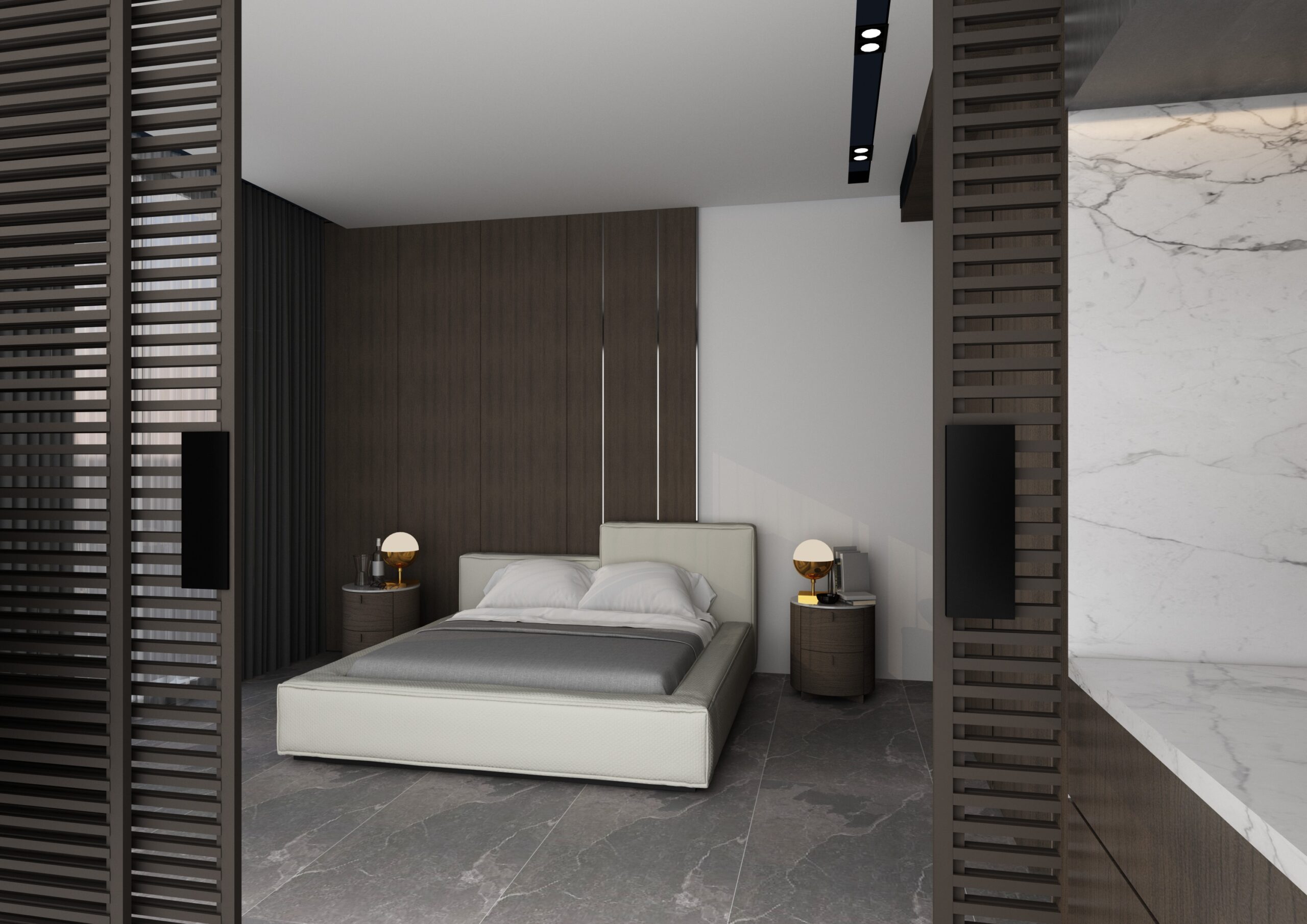 Geniş balkonlar ve kent manzarasıyla bütünleşen yaşam alanları